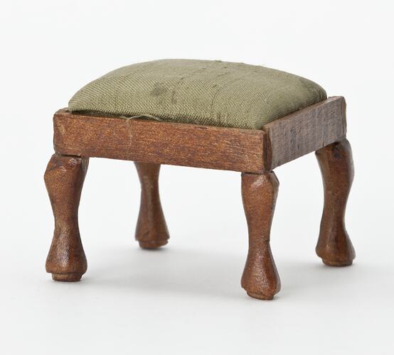 Footstool from Room 19 - Oak Bedroom, Main Building Section, Pendle Hall. From front of chest of drawers.