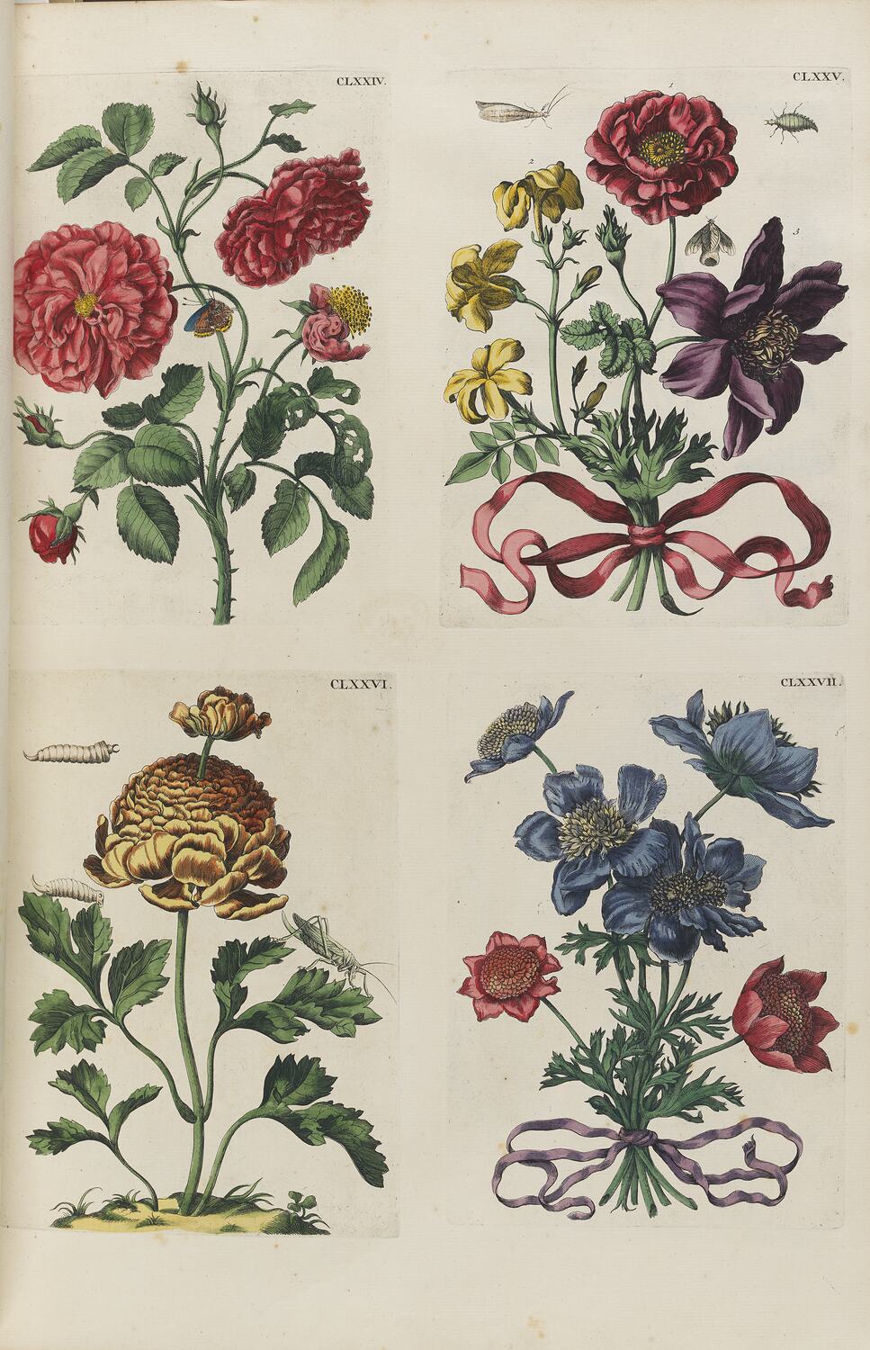 Merian authored the work and also created the original artworks and engravings used to create the prints. The European material was first published in 1769, while the Suriname material was first published in 1705. This edition, produced after Merian's death in 1717, would have been hand-coloured by other colourists. -