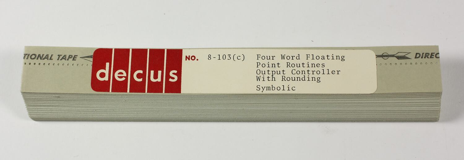 On label: ' decus NO. 8-103(c) Four Word Floating / Point Routines / Output Controller / With Rounding / Symbolic'