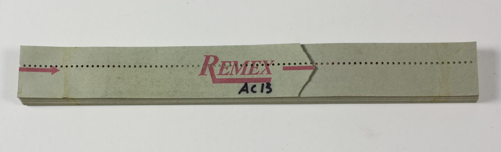 Folded length of punched paper tape, titled 'AC13'.