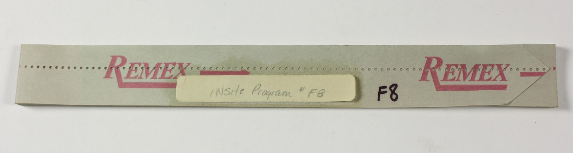 On tape, red: ' REMEX ' On tape, black ink: ' F8 ' On label: ' INsite Program #F8 '
