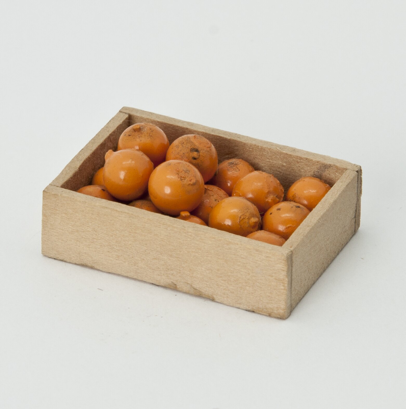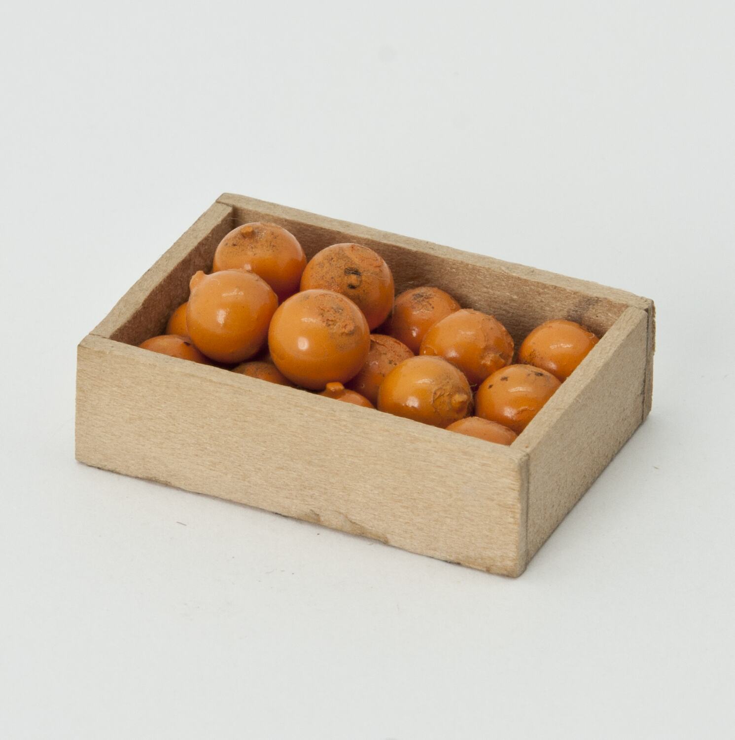 Box of oranges from Room 1 - Larder & Store Room, Basement, Left Section, Pendle Hall. From larder bench.