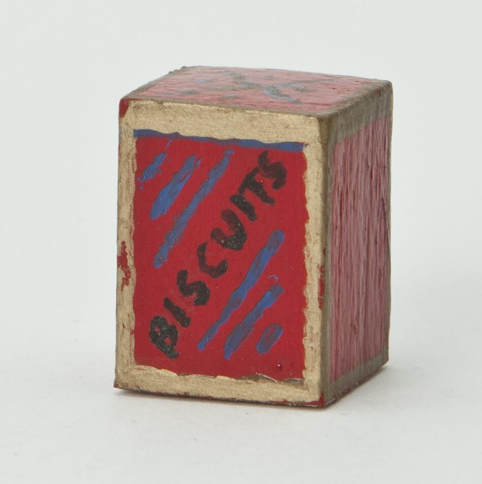 Biscuit tin from Room 1 - Larder & Store Room, Basement, Left Section, Pendle Hall. From larder bench.