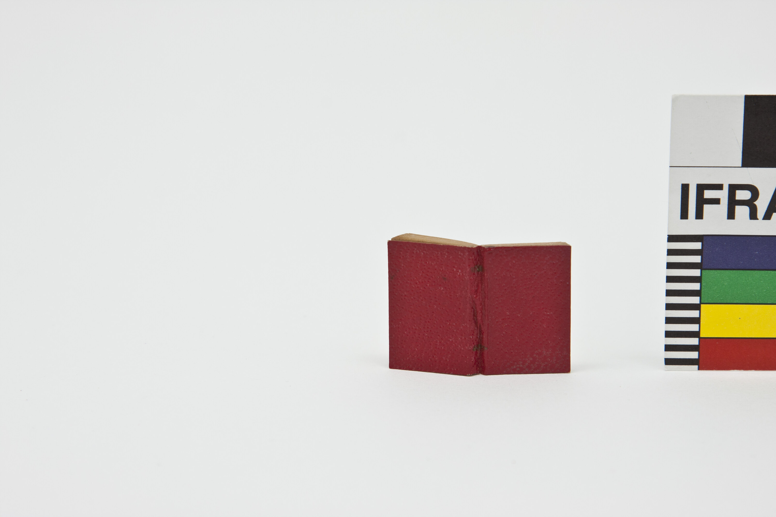 Book with a red cover and plain white pages inside.