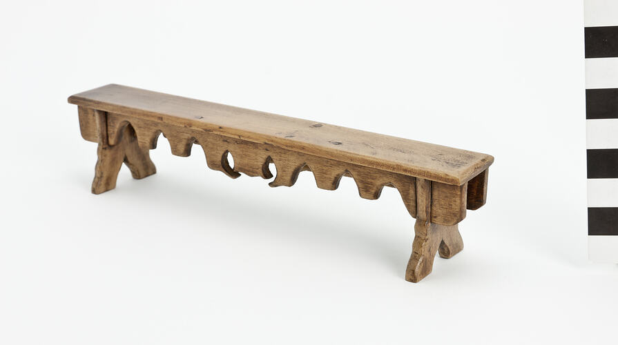 Long, rectangular wooden bench seat.