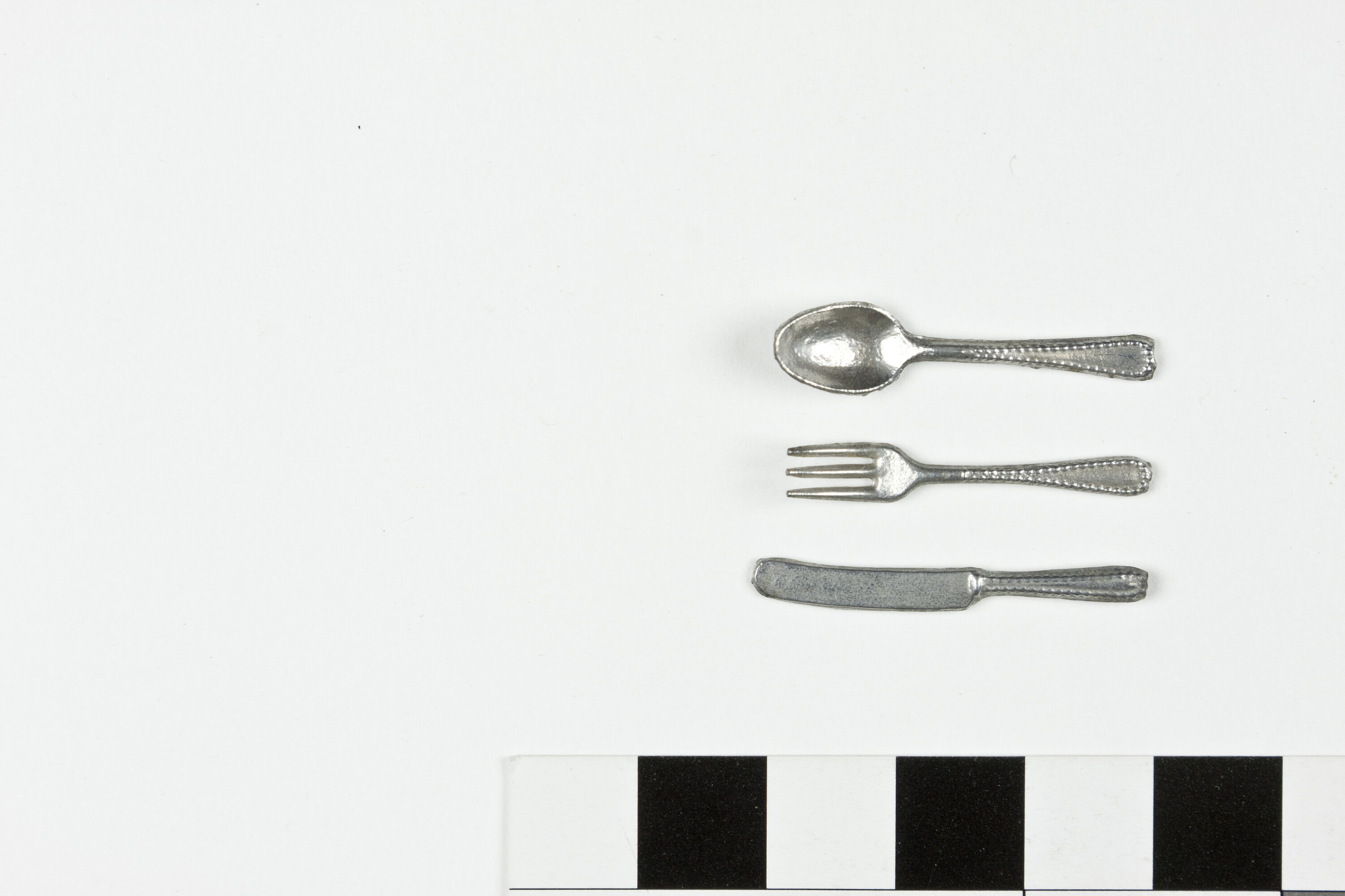 Cutlery set from Room 5 - Servants' Hall, Basement, Central, Pendle Hall. From table back right corner.
