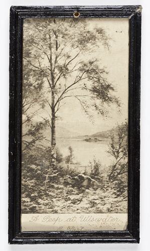 Painting from Room 5 - Servants' Hall, Basement, Central, Pendle Hall. From wall over fireplace.