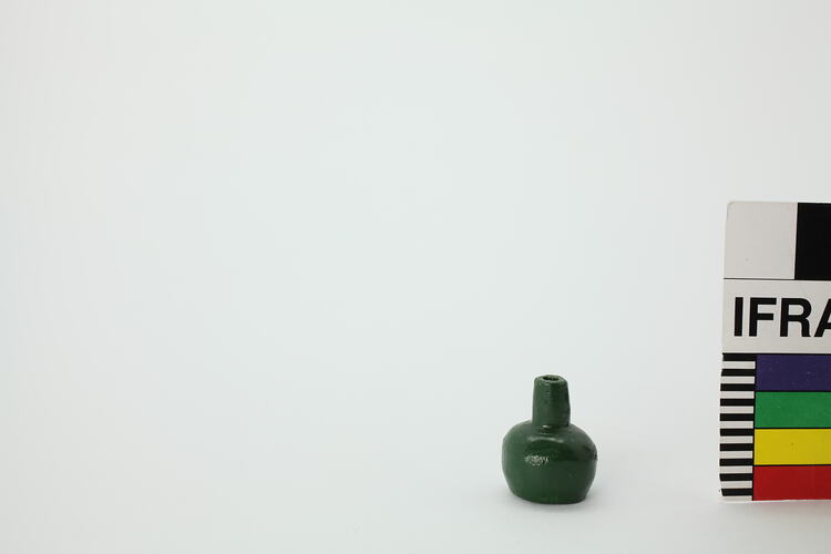 Dark green wooden bottle.