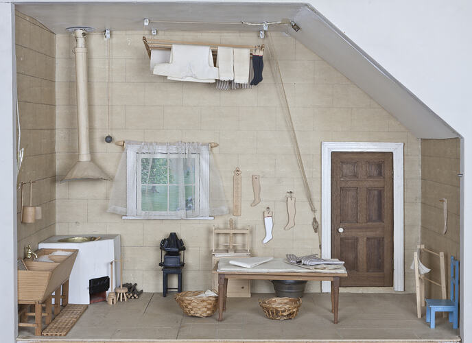 It was created by Felicity Clemons as part of a 40 project to create a grand fully-furnished Georgian style country dolls' house. The project began in the 1940s when Felicity's daughter, Antonia, was given a three-room dolls' house by her grandmother. Mrs Clemons was not happy with its scale or authenticity and so began a rebuilding project which resulted in a four storey grand house, now known as Pendle Hall. Although some items were purchased during shopping trips to Melbourne, the majority of furnishings were constructed by Felicity's own hands, using numerous reference books and magazines.