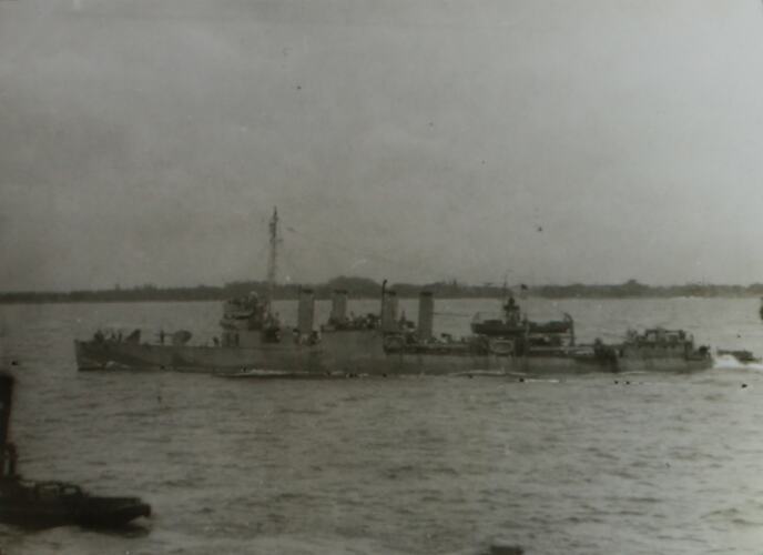 David Ralph Goodwin was born 14 November 1921 in Mordialloc. He enlisted 11 May 1938 in Melbourne, service number 22112, and became an Able Seaman. During World War II he served on HMA Ships Perth (19 May 1939 - 28 August 1941) and Hobart (29 August 1941 - 4 September 1942) before being transferred to HMAS Cerberus (5 September 1942 - 21 July 1943), the Royal Australian Navy's Western Port training facility. He remained at HMAS Cerberus until June 1943 when he was diagnosed as suffering from anxiety neuroses. He was discharged on 21 July 1943. He formed the ex-HMAS Perth Association in 1966. David Ralph Goodwin died on the 4th of June 2011.