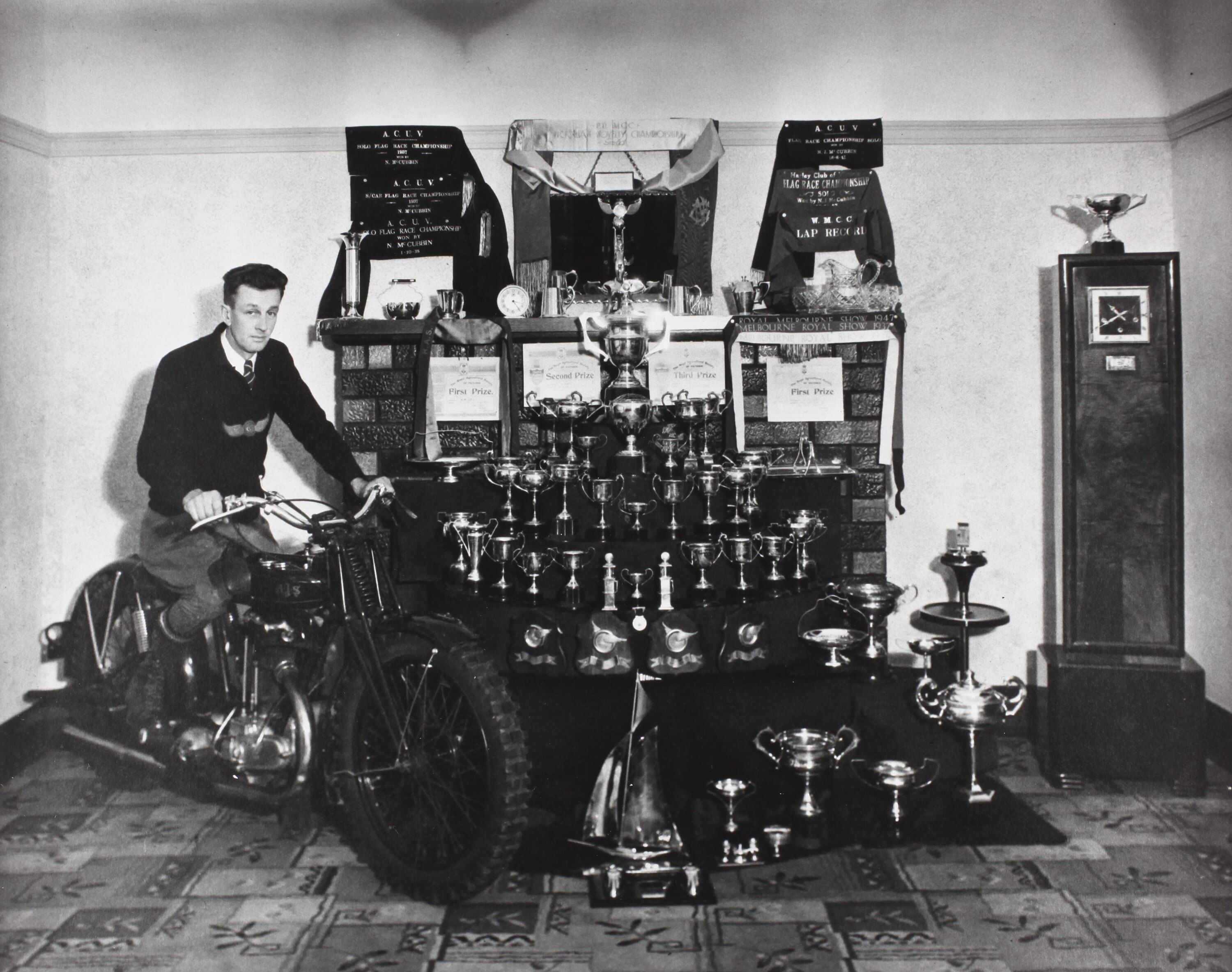 Carpets, Clocks, Displays, Interior Views, Motor Cycle Racing, Motor Cycles, Motor Vehicles, Sport, Sportsmen, Trophies