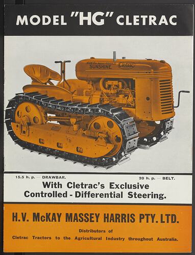 Cletrac (Crawler Tractor) , "McKAY H V MASSEY HARRIS" (Tractor) , "McKAY H V MASSEY HARRIS" (Agricultural Equipment) , "SUNSHINE HARVESTER WORKS" (Agricultural Equipment) , "SUNSHINE" (Tractor) , "SUNSHINE" (Agricultural Equipment) , "SUNSHINE HARVESTER WORKS" (Tractor) , "SUNSHINE" (Crawler Tractor) , Cletrac (Agricultural Equipment) , "SUNSHINE HARVESTER WORKS" (Crawler Tractor)