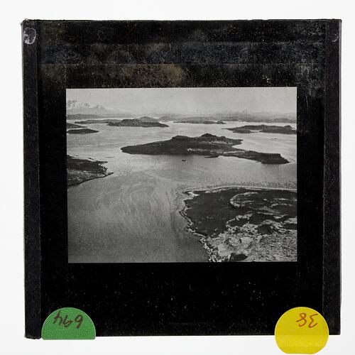 Lantern slide of Kerguelen Lakes, Antarctica.