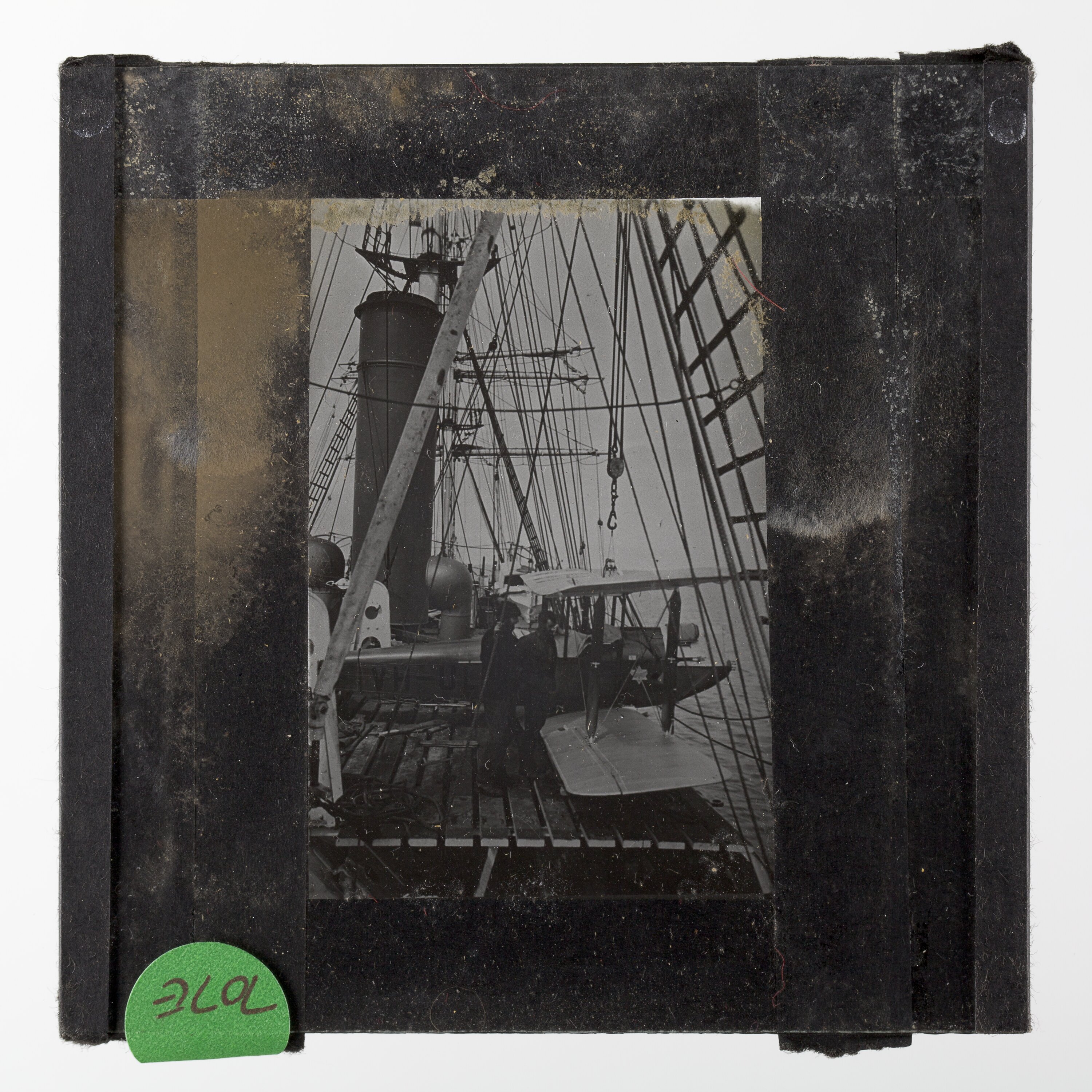 Lantern slide of the de Havilland DH60G Gipsy Mothh, aboard the ship Discovery, Antarctica.