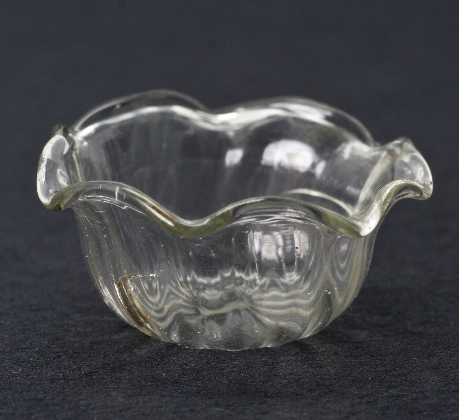 Glass bowl from Room 6 - Kitchen, Basement Central Section, Pendle Hall. From left corner of large kitchen table.
