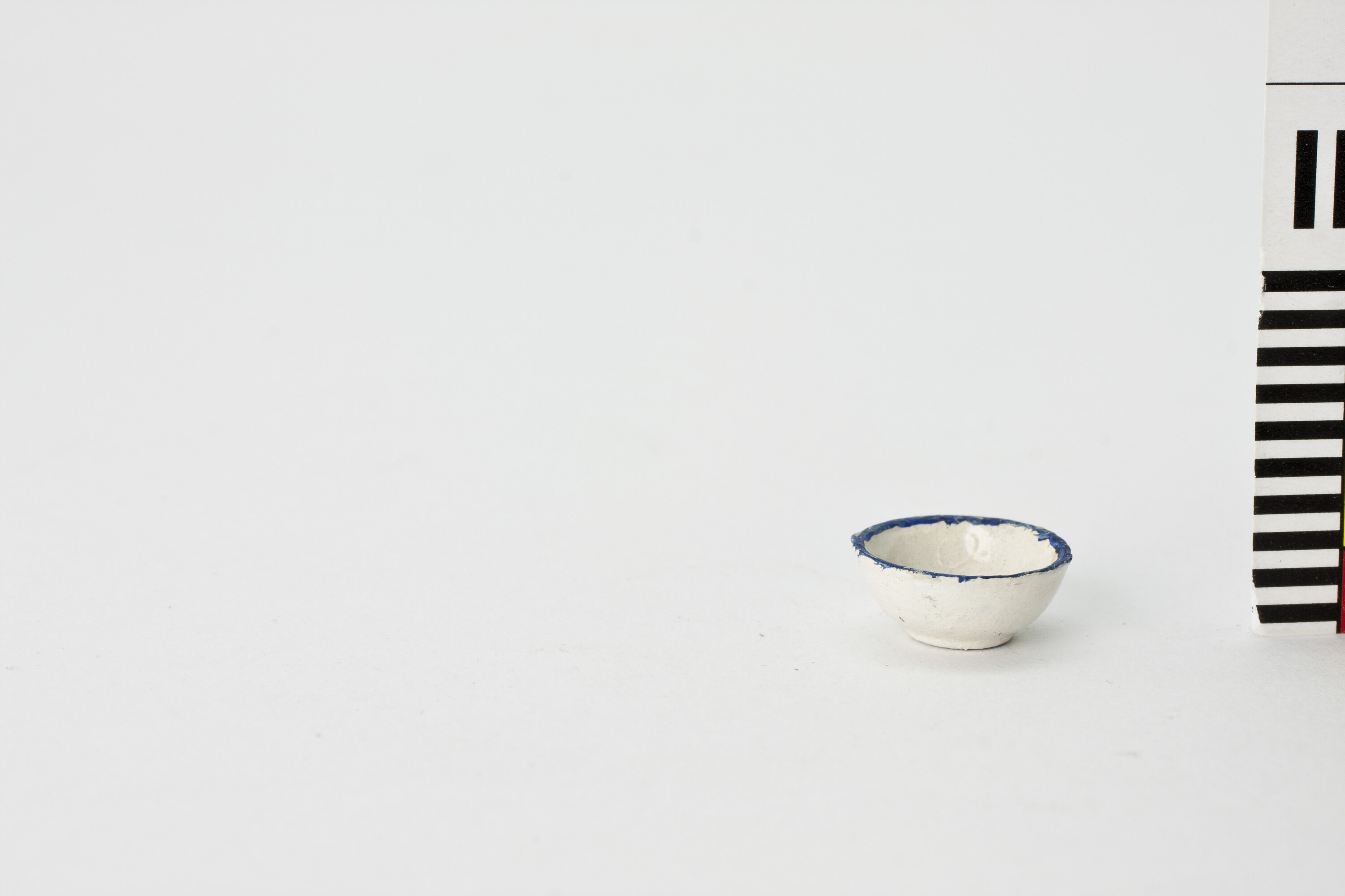White bowl from Room 6 - Kitchen, Basement Central Section, Pendle Hall. From left corner of large kitchen table.