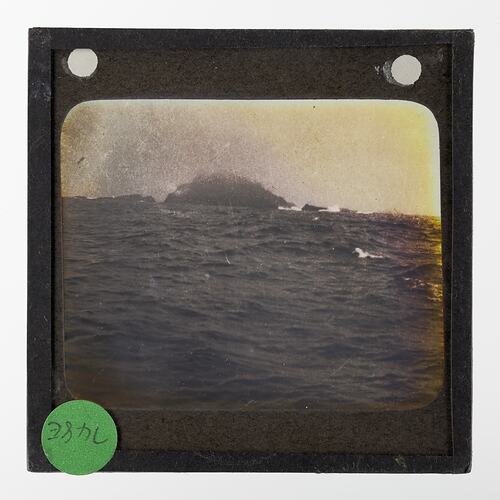 Lantern slide of Bishop & Clark Rocks, off the southern end of Macquarie Island, Sub-Antarctic.