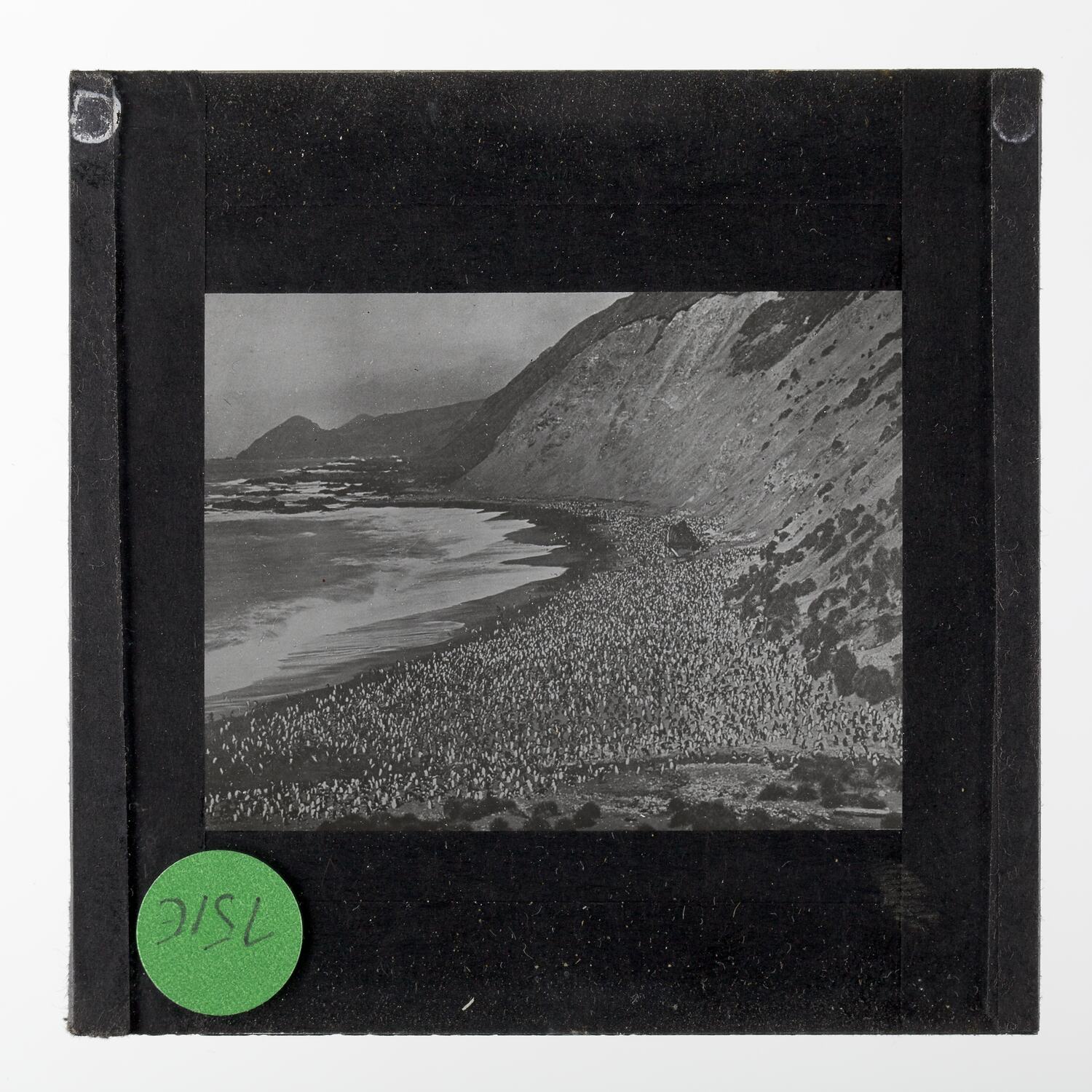 Thousands of Royal Penguins in Rookeries on Macquarie Island. Eric Douglas' log 'Soon we came across a stream, and going up and down this stream were many (Royal) penguins. They were going to and from their rookeries. We walked up the shallow stream for several hundred yards and then came across a large rookery. Frank Hurley took cinema [motion film footage] along the way and at the rookery. We returned to the beach and watched the penguins surfing. They were playing around just like people on the beach. The Penguins here were quite tame and did not take much notice of us. They estimate there are at least half a million penguins at this part of the Island. Probably the biggest rookery in the world'. Photograph taken during the British Australian New Zealand Antarctic Research Expedition (BANZARE), Voyage 2.