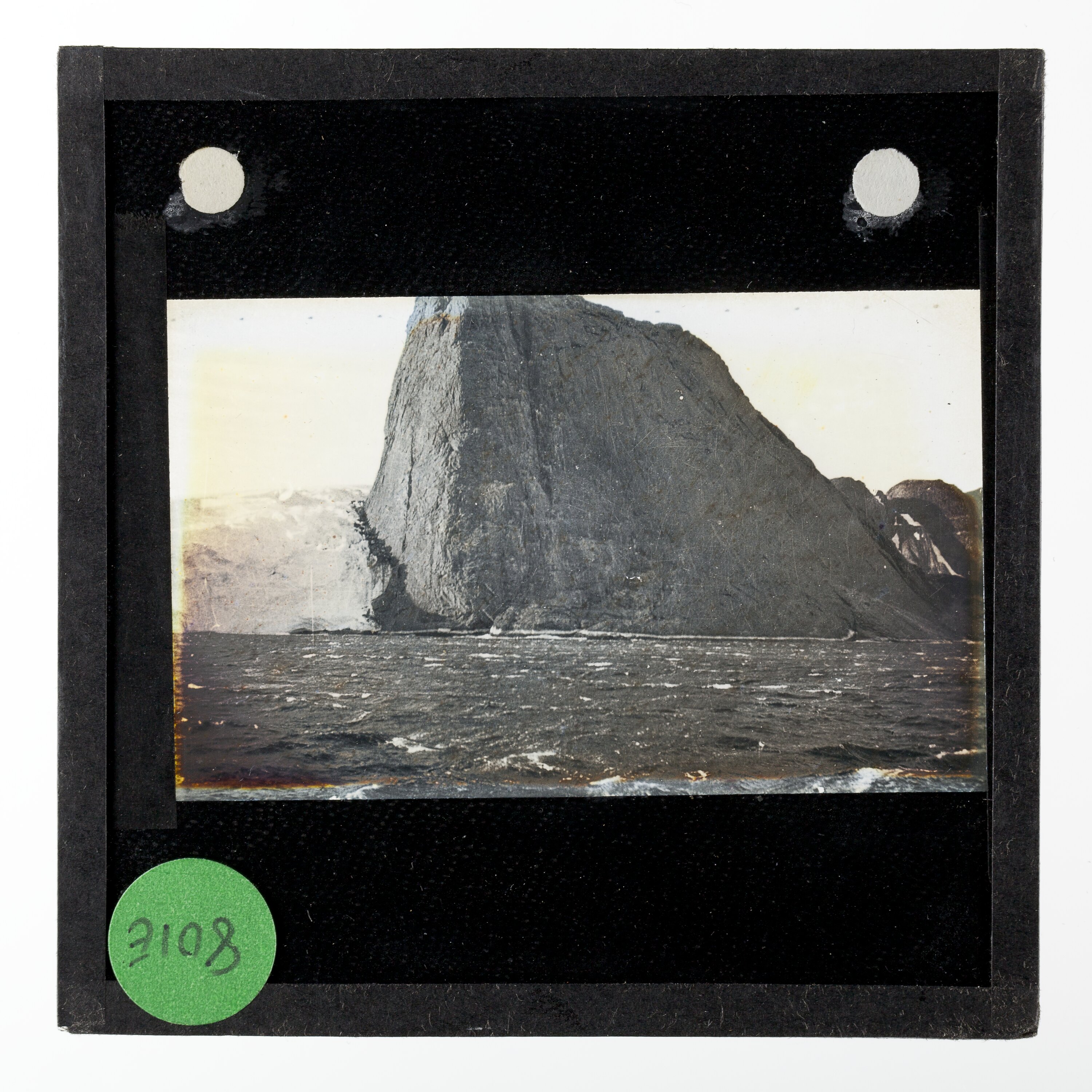 Lantern slide of the Murray Monolith, Mac-Robertson Land, Antarctica.