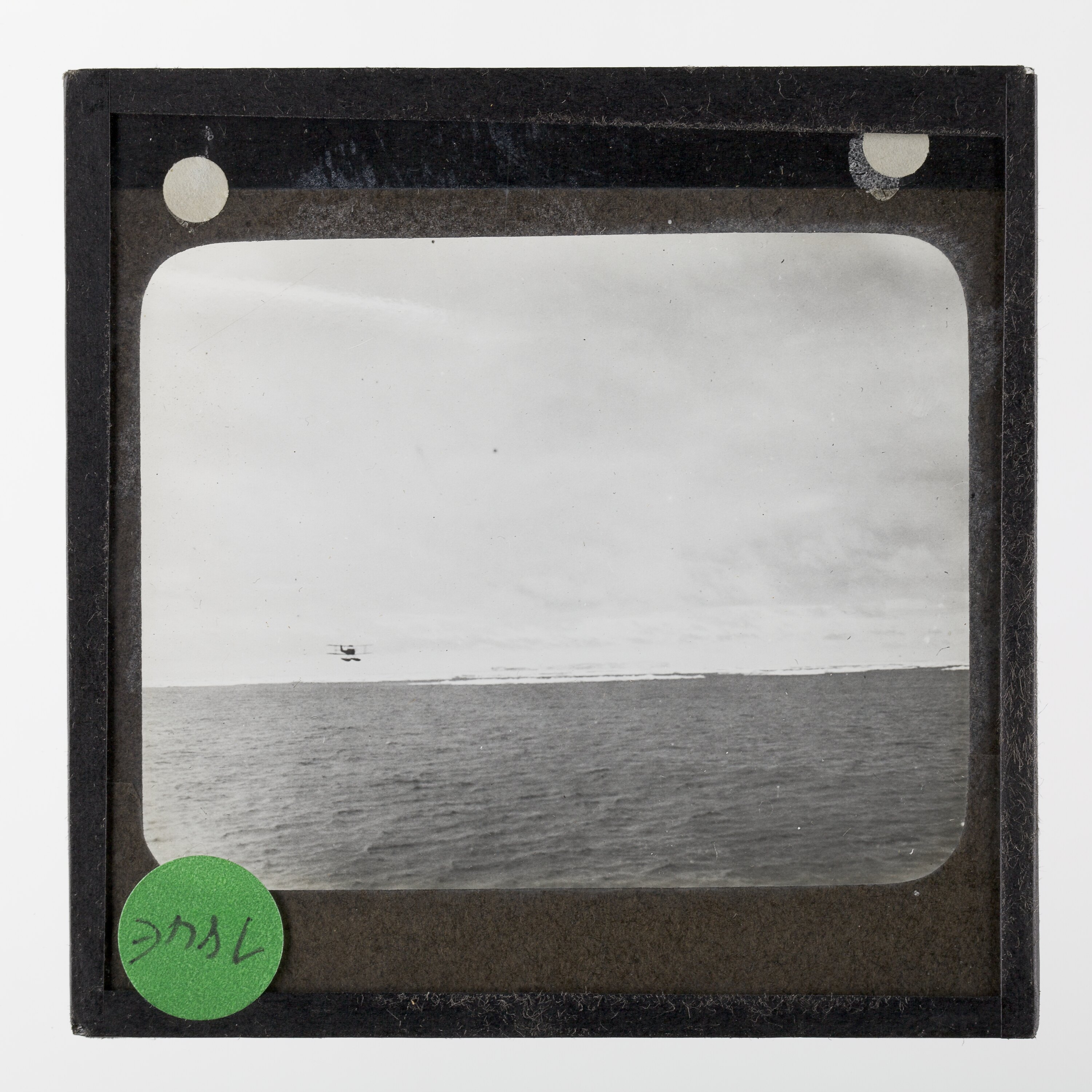 Lantern slide of the start of the reconnaissance flight for the Ellsworth Relief Expedition, Ross Sea, Antarctica.