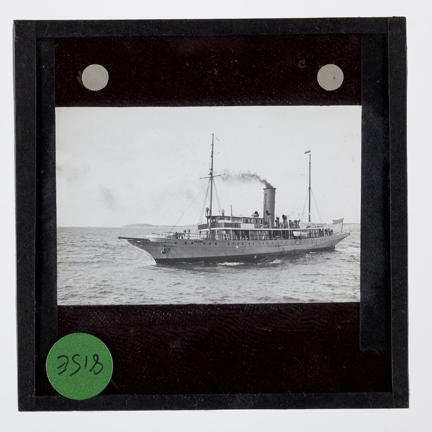 Lantern slide of the pilot ship Akuna in Port Phillip.