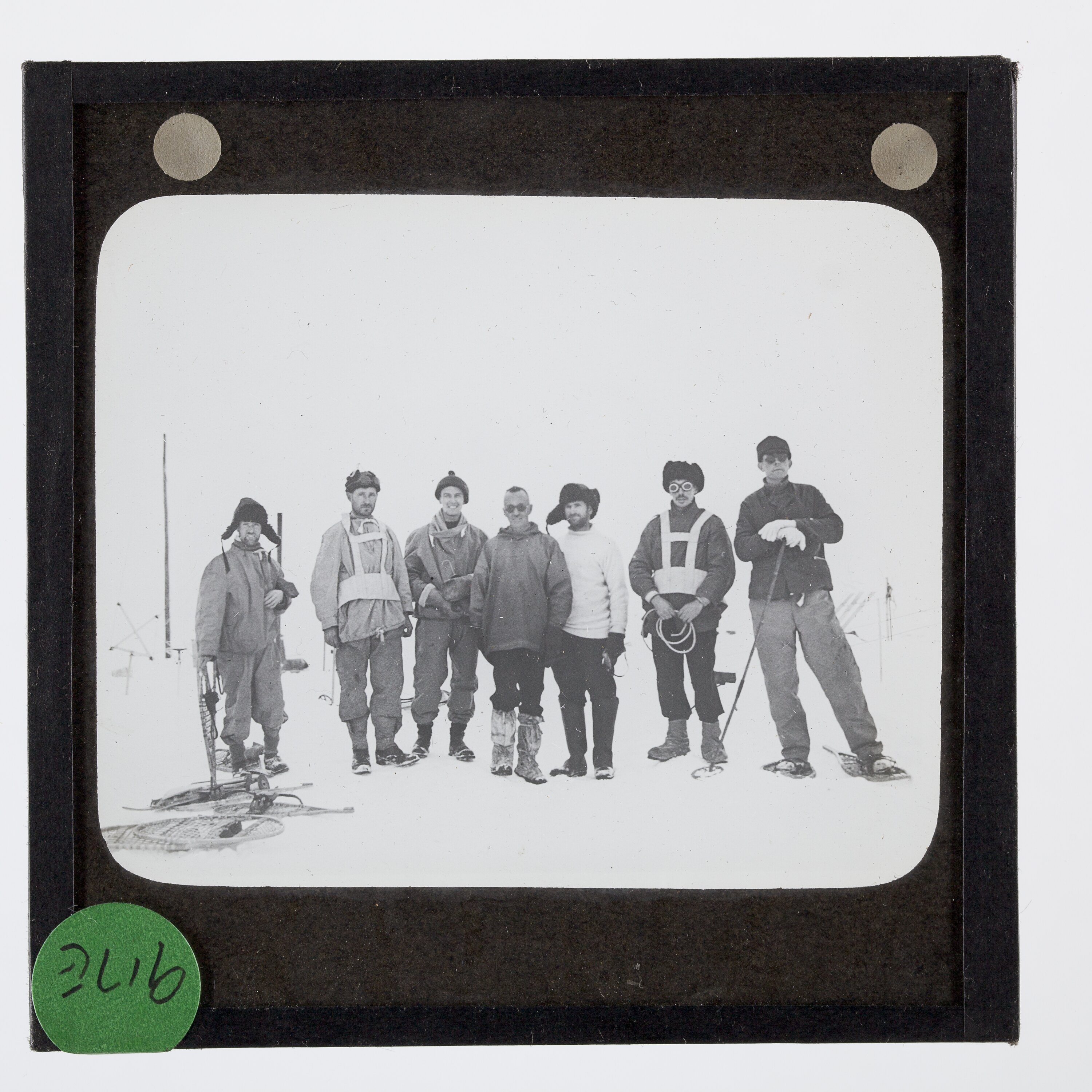 Lantern slide of the RAAF search party for Lincoln Ellsworth and Herbert Hollick-Kenyon, Antarctica.