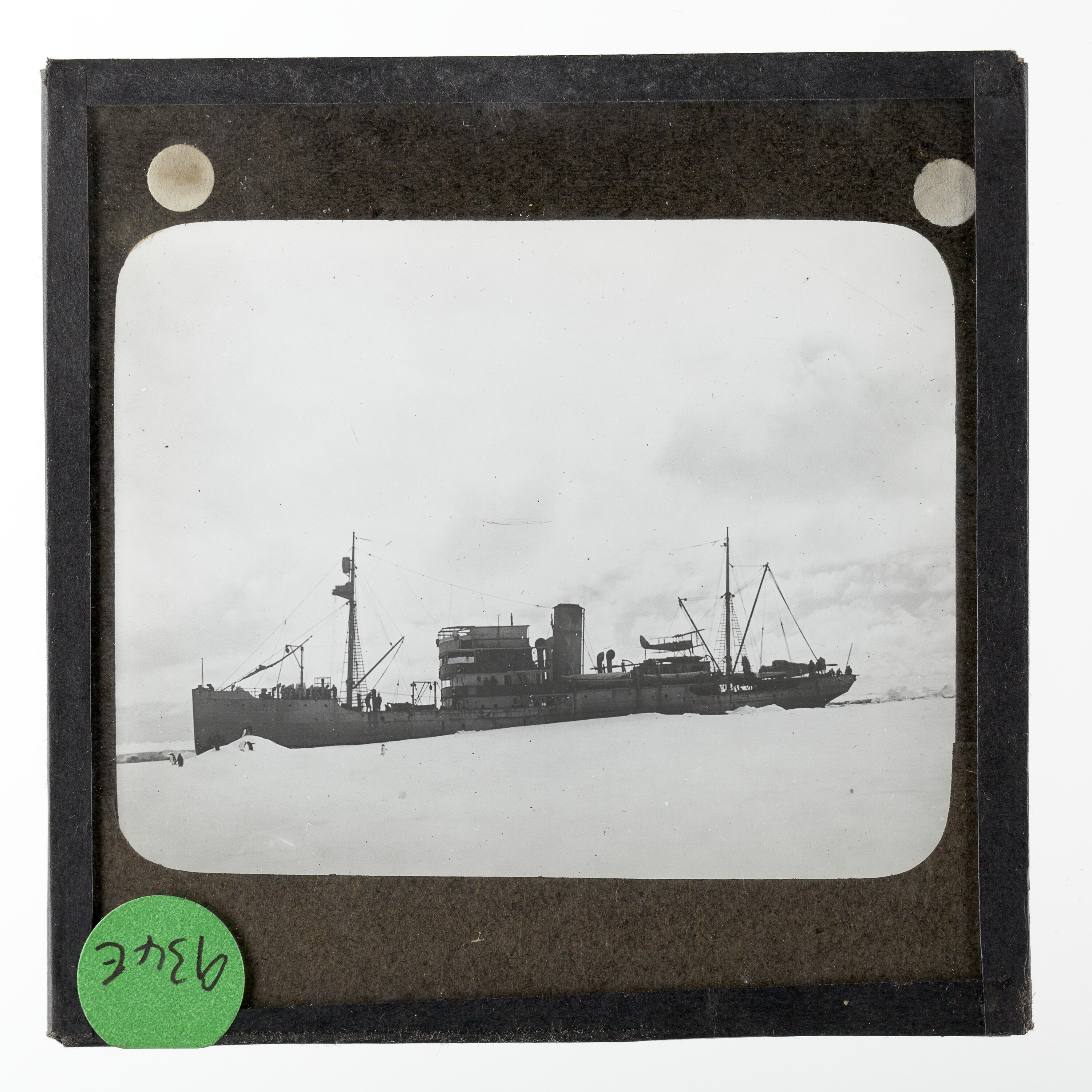 Lantern slide of the Discovery II, Antarctica.