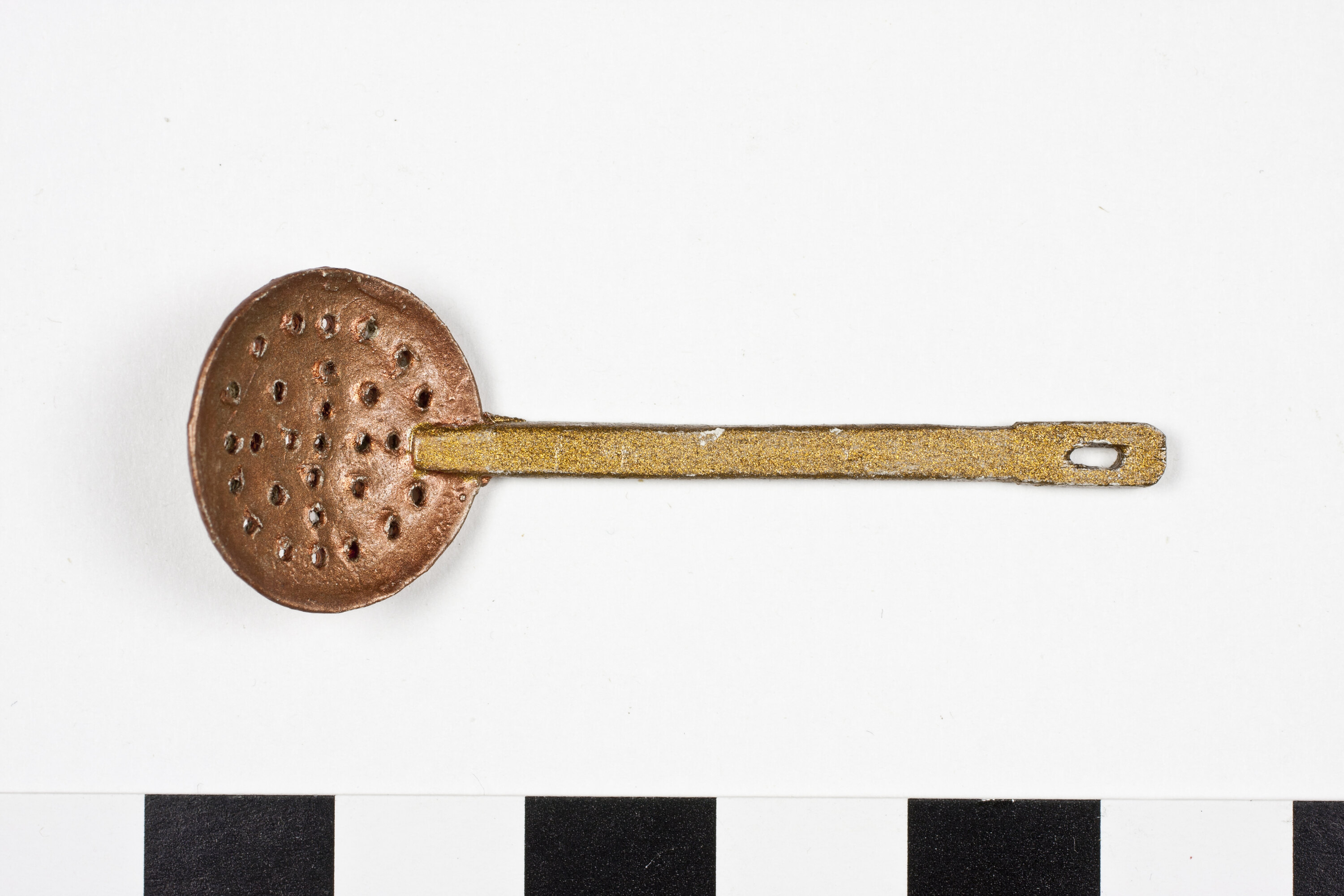 Slotted spoon from Room 6 - Kitchen, Basement Central Section, Pendle Hall. From hook on the right side of stove.