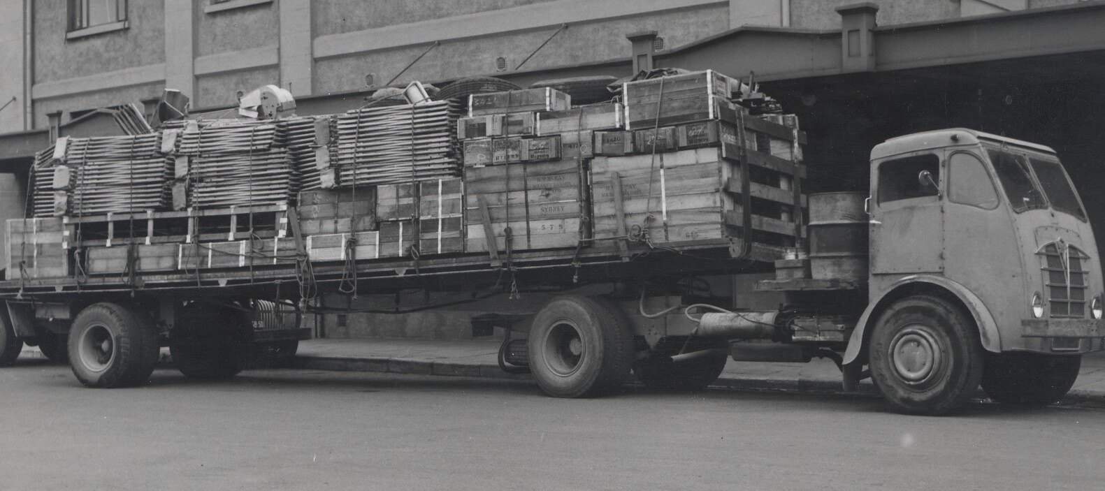 Photograph of a truck laden with packing cases.