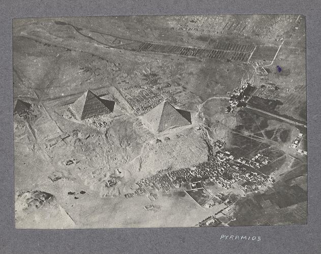 Handwritten in white ink on the support underneath the bottom right corner of the photograph: 'PYRAMIDS'