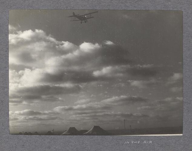 Handwritten in white ink on the support underneath the bottom right corner of the photograph: 'IN THE AIR'