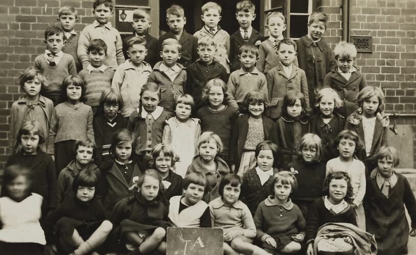 Group portrait of children in class 1A at Eastern Road State School in South Melbourne.