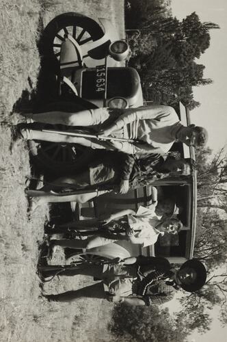 Bushland, Cars, Guns, Hunters, Hunting, Motor Cars, Motor Vehicles, People, Rifles, Road Transport, Rural Life, Rural Victoria, Shooting
