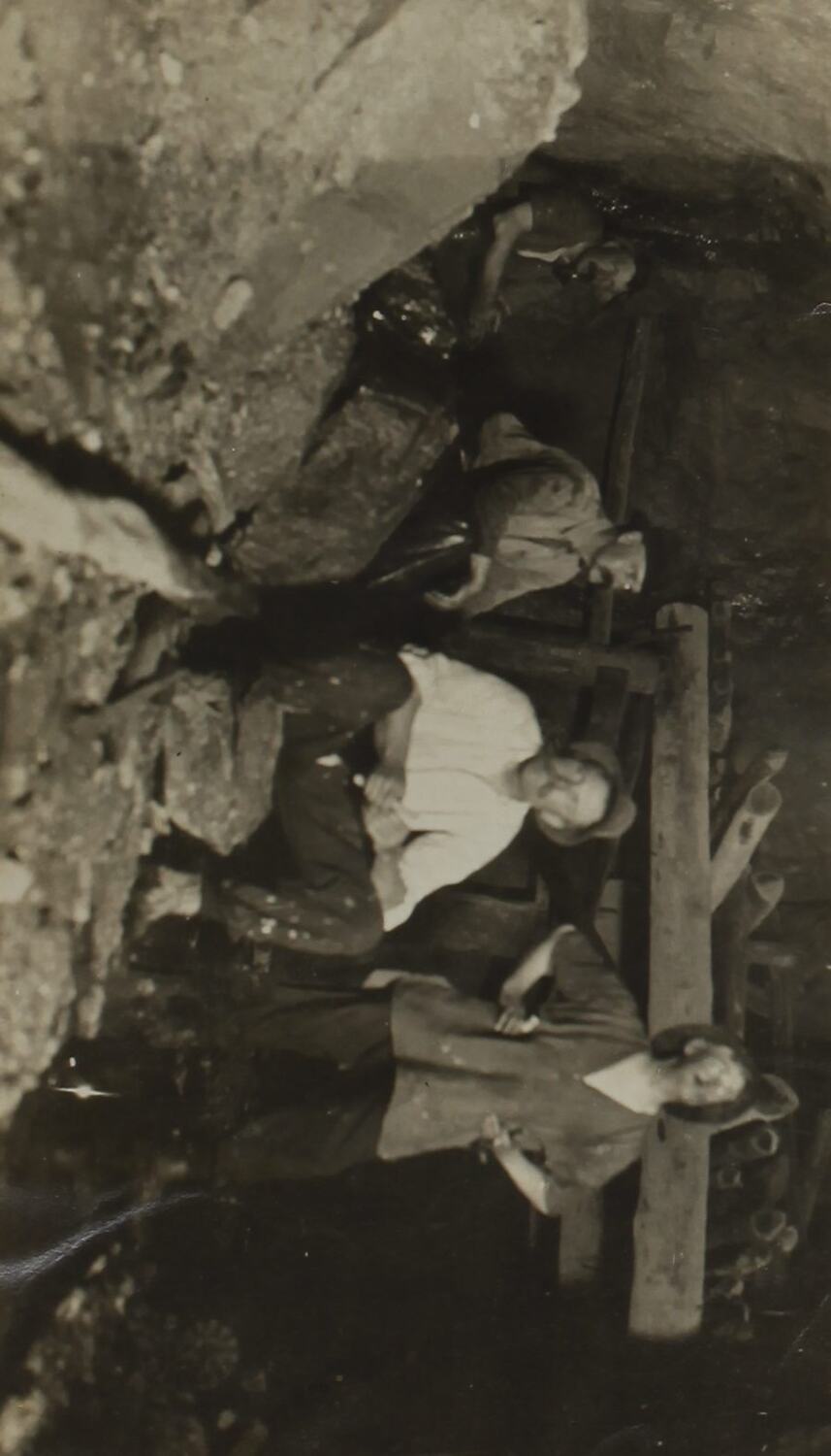 Group portrait showing four workmen underground in a gold mine at Kalgoorlie.