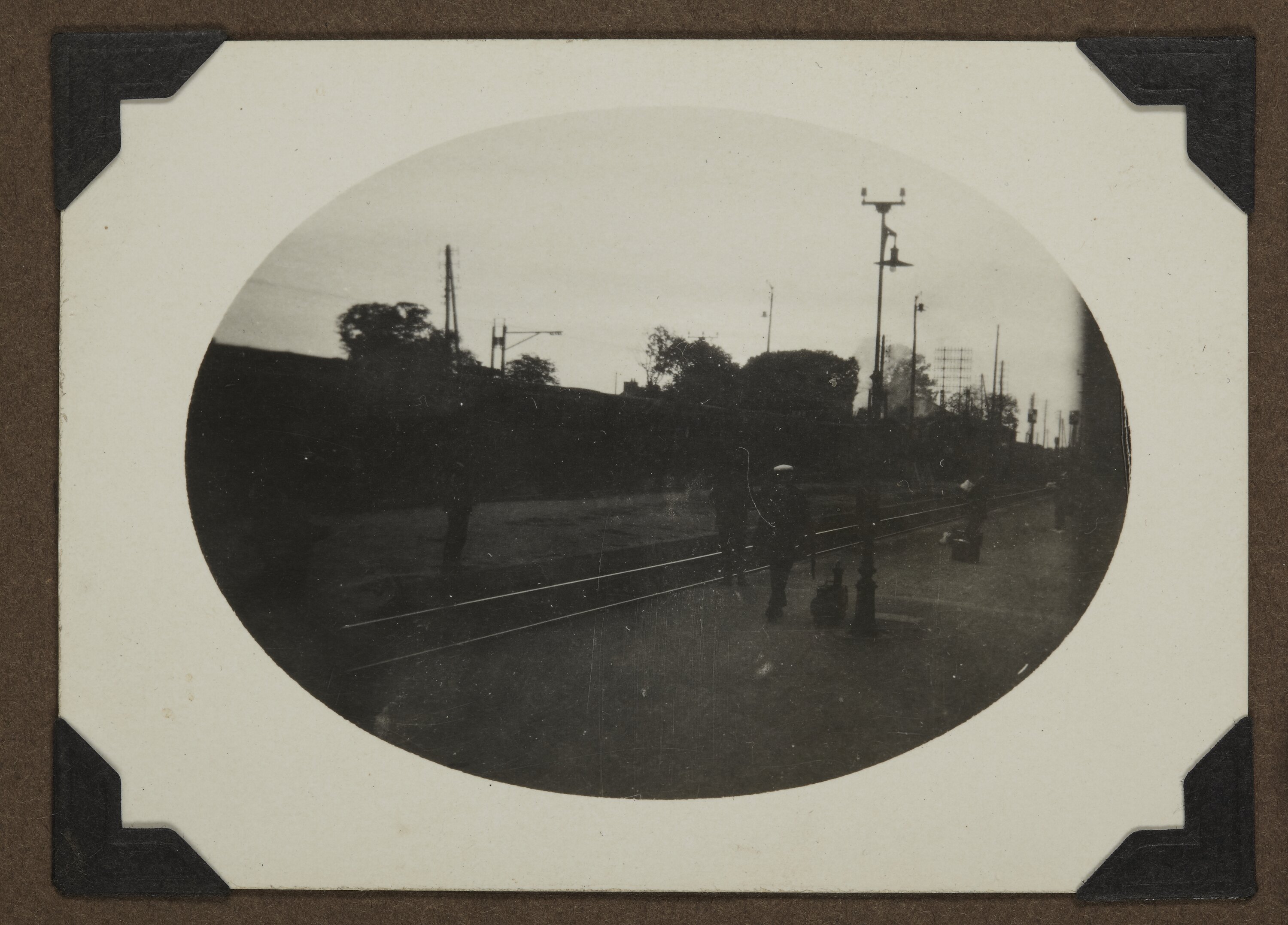 Printed in grey ink on back of photograph: 'VELOX' Hand written in blue ink on back of photograph: 'French Railway / Station'