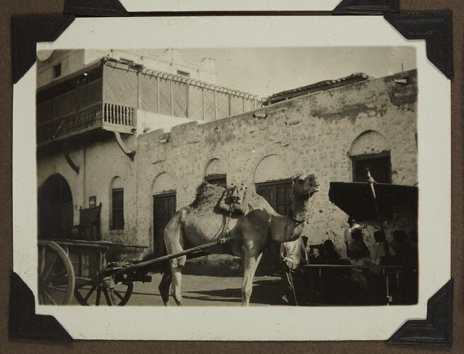 One of ninety three images from a photograph album brought to Australia by Archibald Gordon Maclaurin when he migrated in 1928. It includes early photos of his pre-migration trips to France, as well as photos he added once in Australia, including photos sent to him by family in England, and images from his migration journey. This image was taken by Archie in Egypt, one of the ports of call on his journey to Australia in 1928.