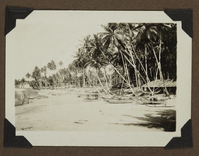 Beaches, Boats, British Immigration, Brought Goods, Canoes, Coastal Landscapes, Coastlines, Huts, Immigrant Voyages, Immigration, Migrants, Migration & Settlement, Palm Trees, Photography, Rock Formations, Shipboard Travel, Travel & Tourism, Villages