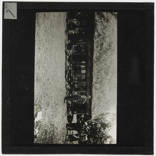 Part of a collection of 55 photographic lantern slides, glass negatives and acetate negatives of travel images taken in the Pacific Islands, probably in the late 1930s. The slide is numbered '7'.