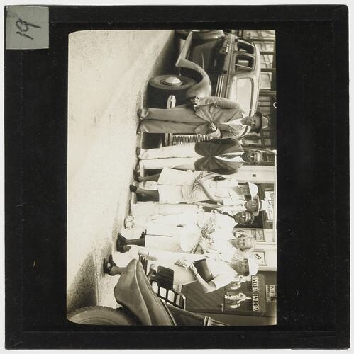 Part of a collection of 55 photographic lantern slides, glass negatives and acetate negatives of travel images taken in the Pacific Islands, probably in the late 1930s. The slide is numbered '19'.
