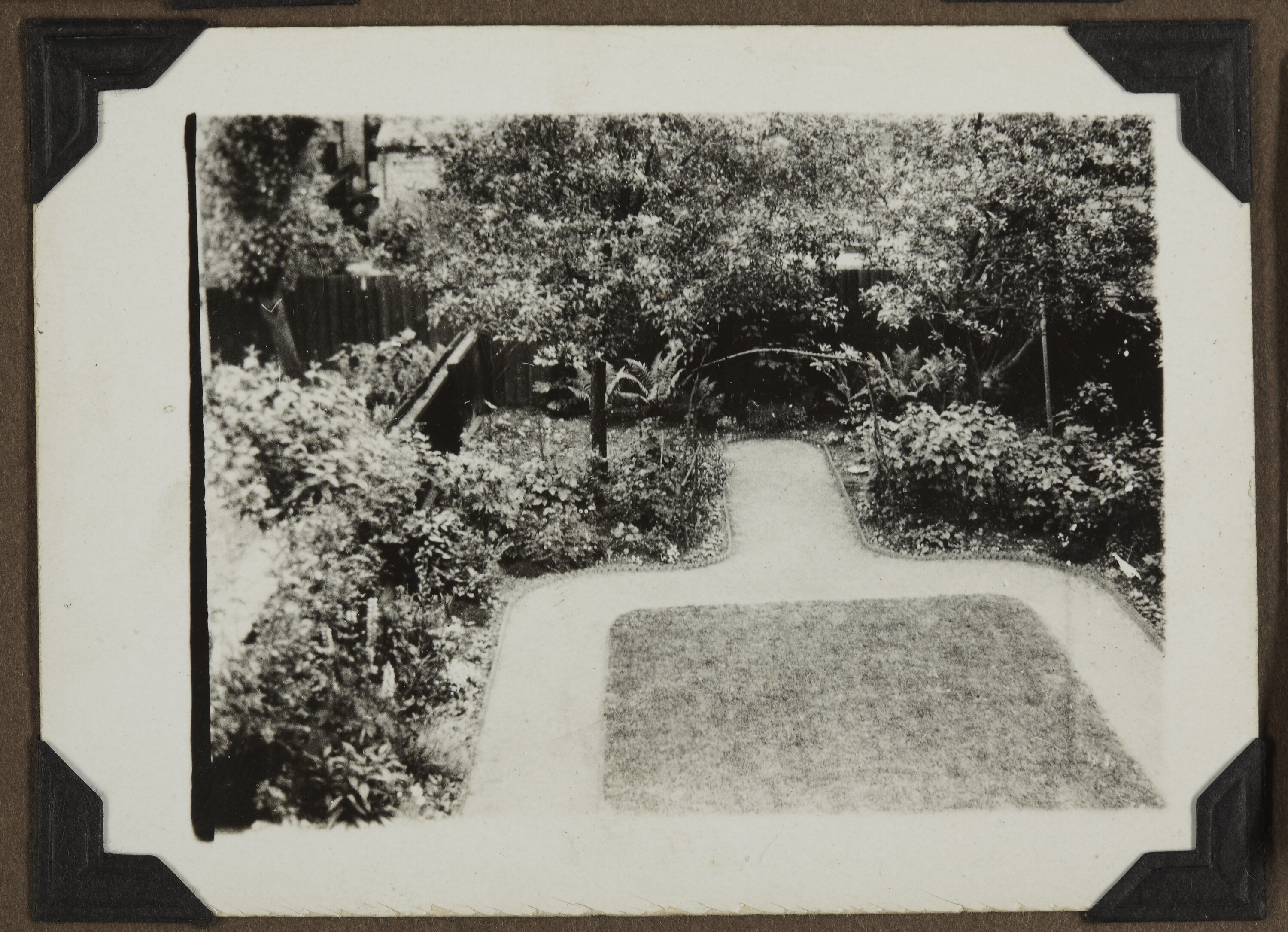 Printed in grey ink on back of photograph: 'VELOX.' [repeated] Hand written in blue ink on back of photograph: 'Andy's Garden'