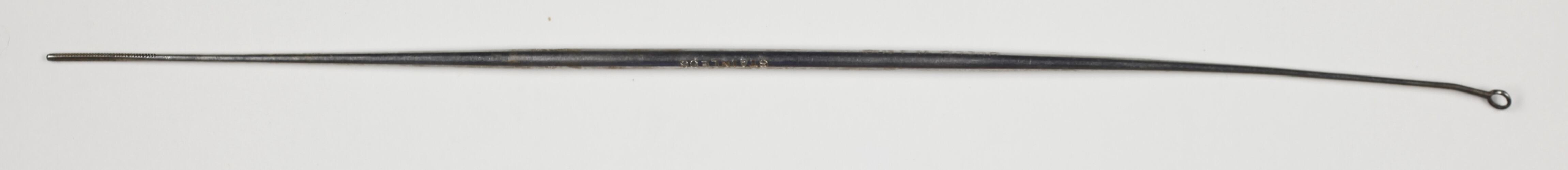 Standard otolarygology tool for removing earwax from canal pre-surgery.