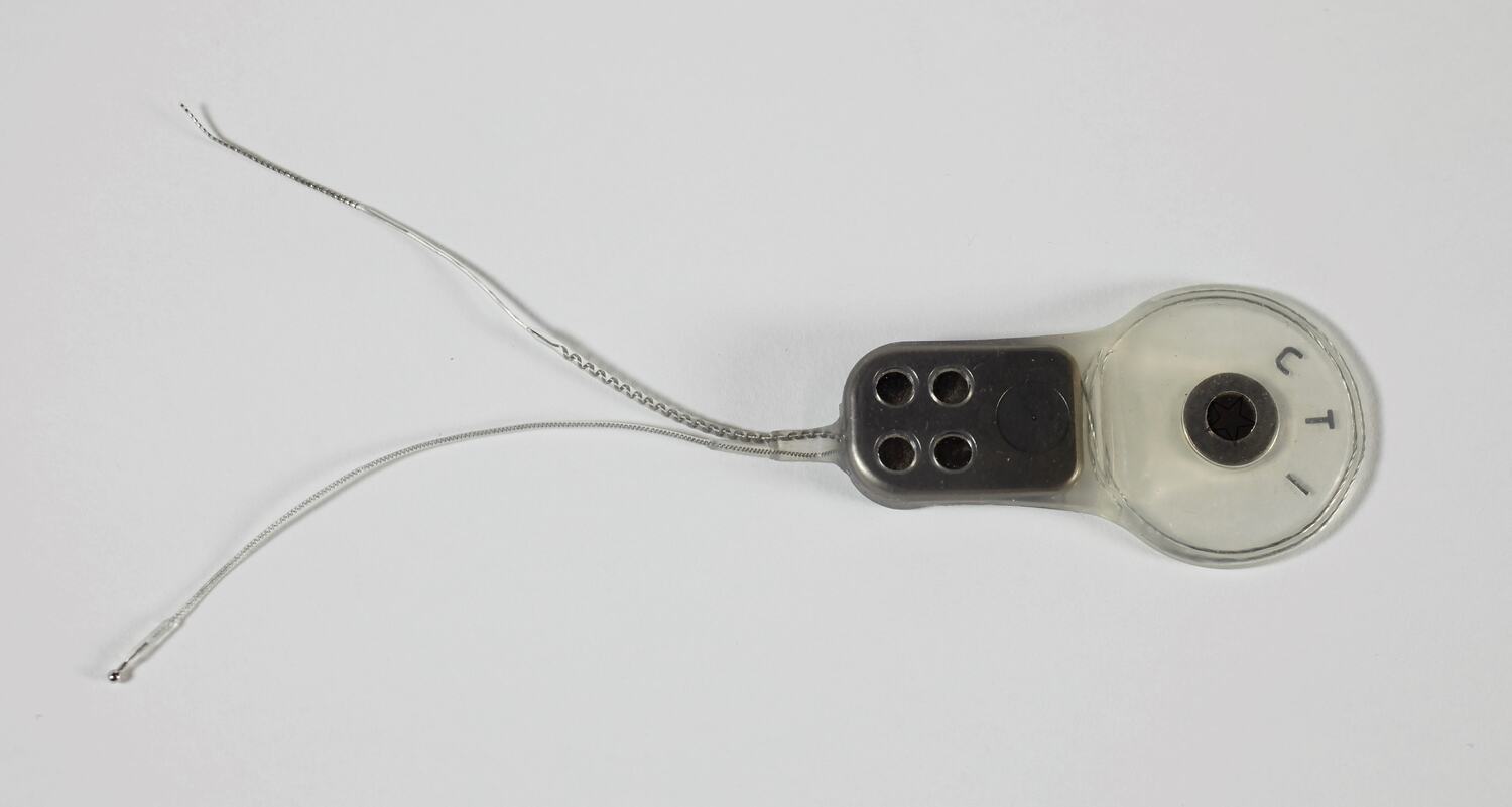 Receiver-stimulator manufactured in the 1980s and used circa 1990.