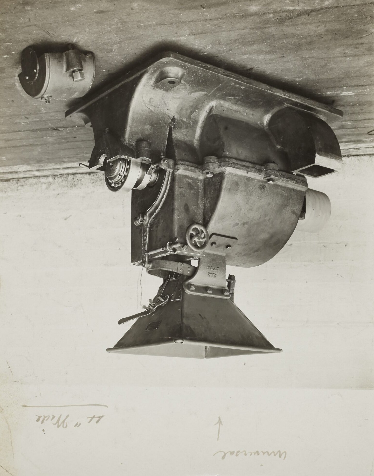Black and white promotional image of the number 34 machine. It is part of a collection of photographs and marked printer's copy used in the preparation of trade literature promoting products manufactured by the Schumacher Mill Furnishing Works Pty Ltd. The items were originally housed in a wooden filing drawer, with many filed by subject. This photograph was previously filed under 'ROLLER MILLS'.