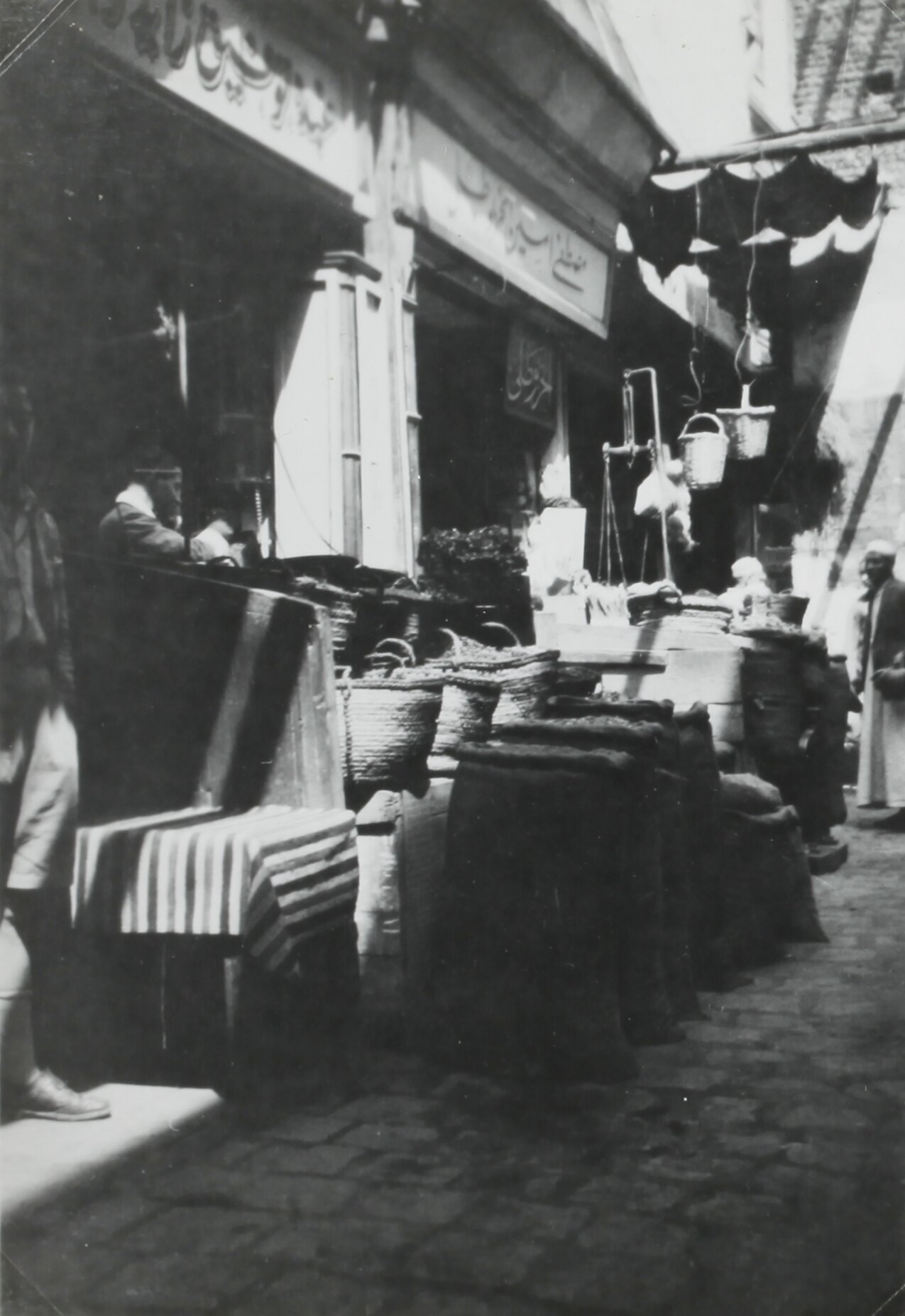 Hand written in white ink on album page below photograph: 'SPICE MARKET' Printed in black ink on back of photograph: 'VELOX[repeated]'