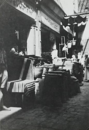 Baskets, Exterior Views, Markets, Militaria: Australian, Military Memorabilia, People, Stalls, Streetscapes, Wars & Conflicts, World War II, 1939-1945