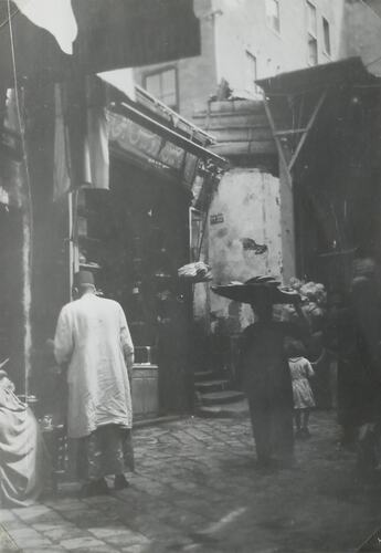Baskets, Buildings, Exterior Views, Markets, Militaria: Australian, Military Memorabilia, People, Stalls, Streetscapes, Wars & Conflicts, World War II, 1939-1945