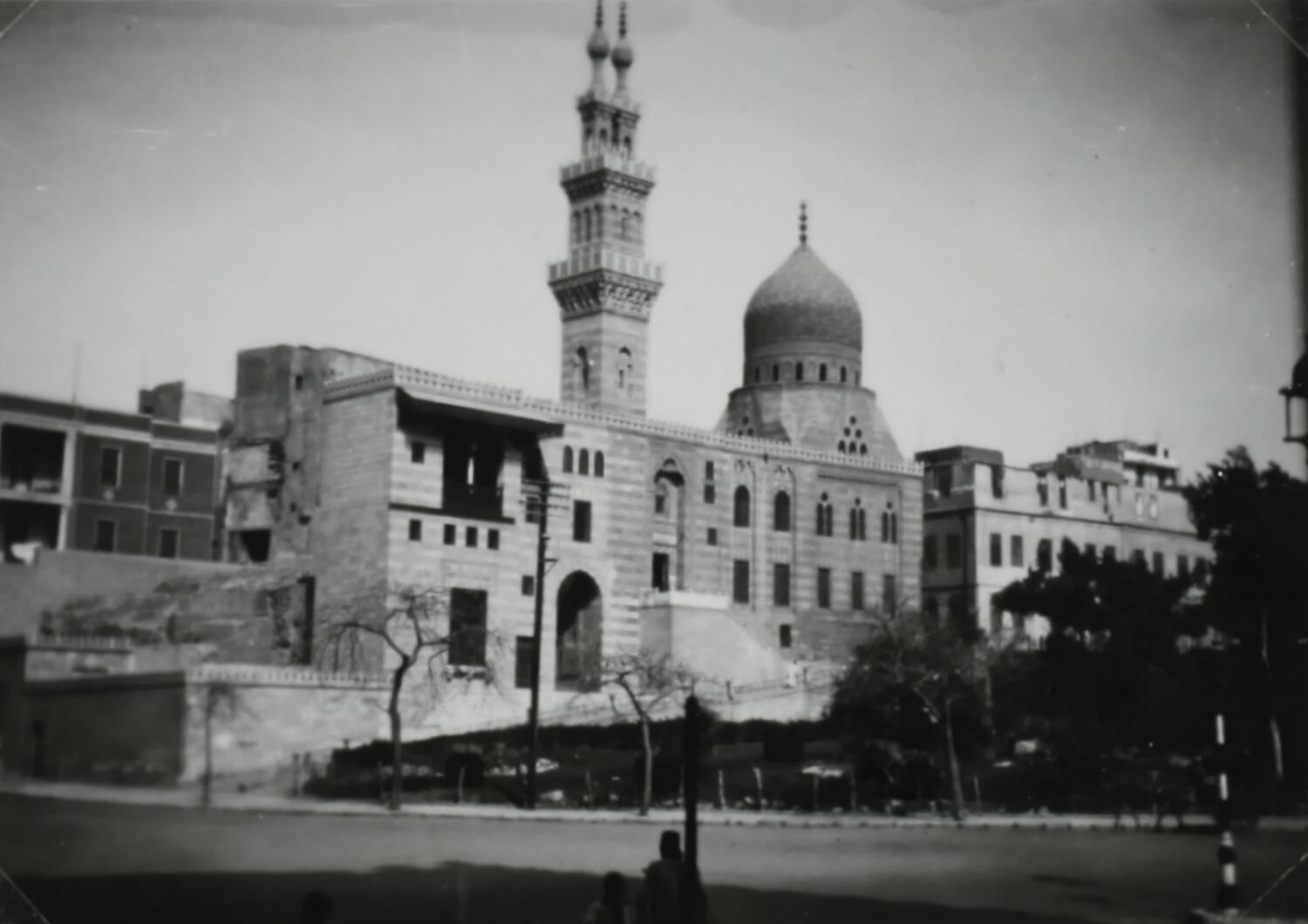Hand written in white ink on album page below photograph: 'MOSQUE CAIRO' Hand written in grey pencil on back of photograph: '2' Printed in black ink on back of photograph: 'Velox[repeated]'