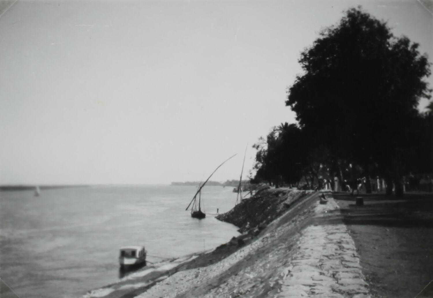 Hand written in white ink on album page below photograph: 'NILE AT LUXOR.' Hand written in grey pencil on back of photograph: '2' Printed in black ink on back of photograph: 'Velox[repeated]'