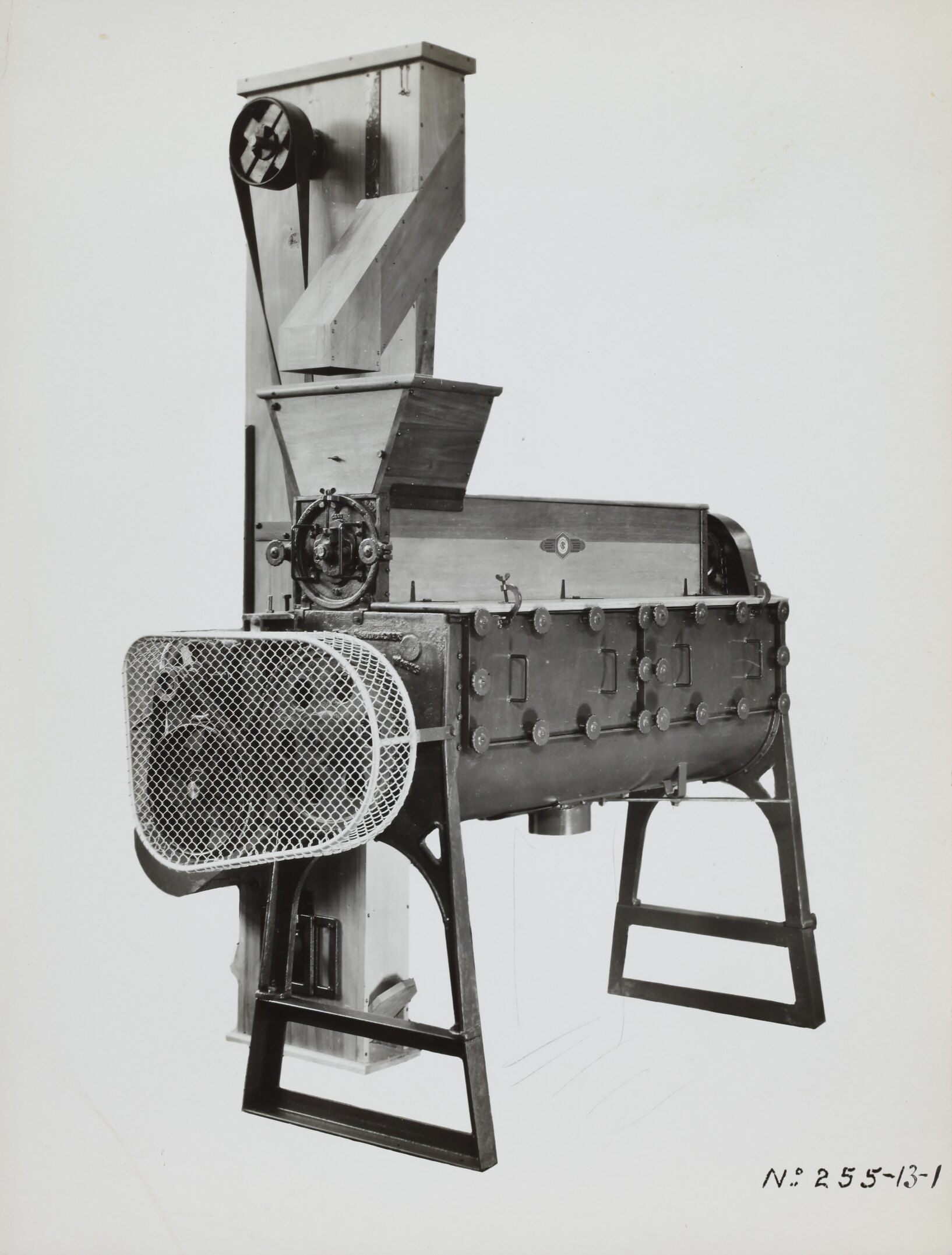 Printed on front of photograph: 'No. 255-13-1' Printed in black ink on back of photograph: 'Kerr / BROS. / COMMERCIAL / PHOTOGRAPHERS / 533 COLLINS ST. MELBOURNE' Printed in red ink on back of photograph: 'OFFICE COPY / Note... There are two / further views of this / m/c .. ref. 255-2 and / 255-3' Printed in black ink on back of photograph: 'NO. 13 MIXER WITH SIFTER & MOTOR DRIVE. / REF. ORDER 48207.' Hand written in black ink on back of photograph: '-13. / -13.'