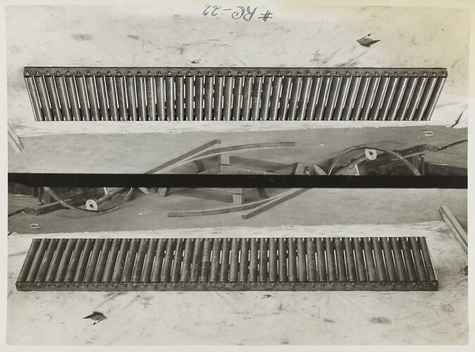 Handwritten in black ink on the front of photograph: '#RC-18' Printed in black ink on the back of photograph: 'PHOTO FILE NO / SECTION NO' Printed in red ink on the back of photograph: 'OFFICE COPY' Handwritten in black ink on the back of photograph: '22.' Handwritten in grey pencil on the back of photograph: '3B / [indecipherable] 11AM / 18/12/29 / 4 1/2 wide layout / [indecipherable]' Printed in purple ink on back of photograph: 'Commercial Photographers / Kerr / BROS. / 533 COLLINS ST. MELB'